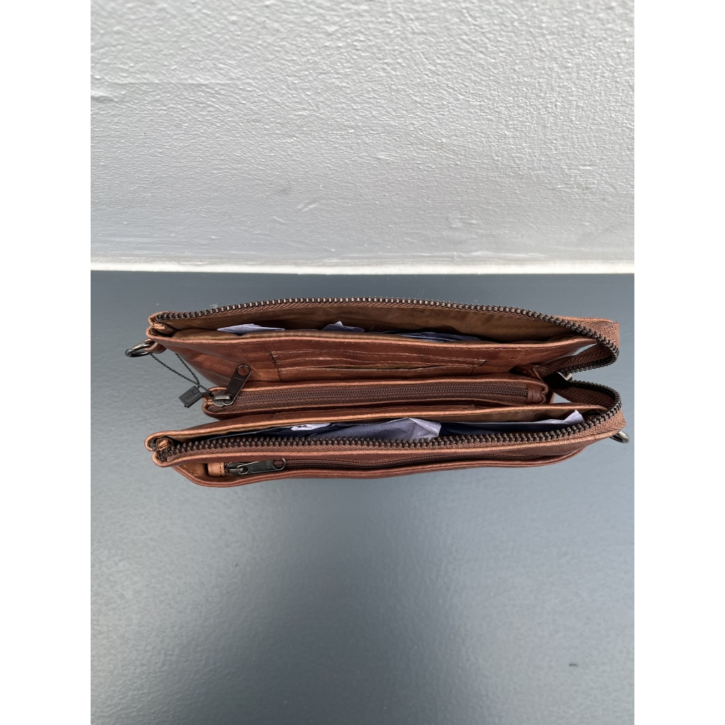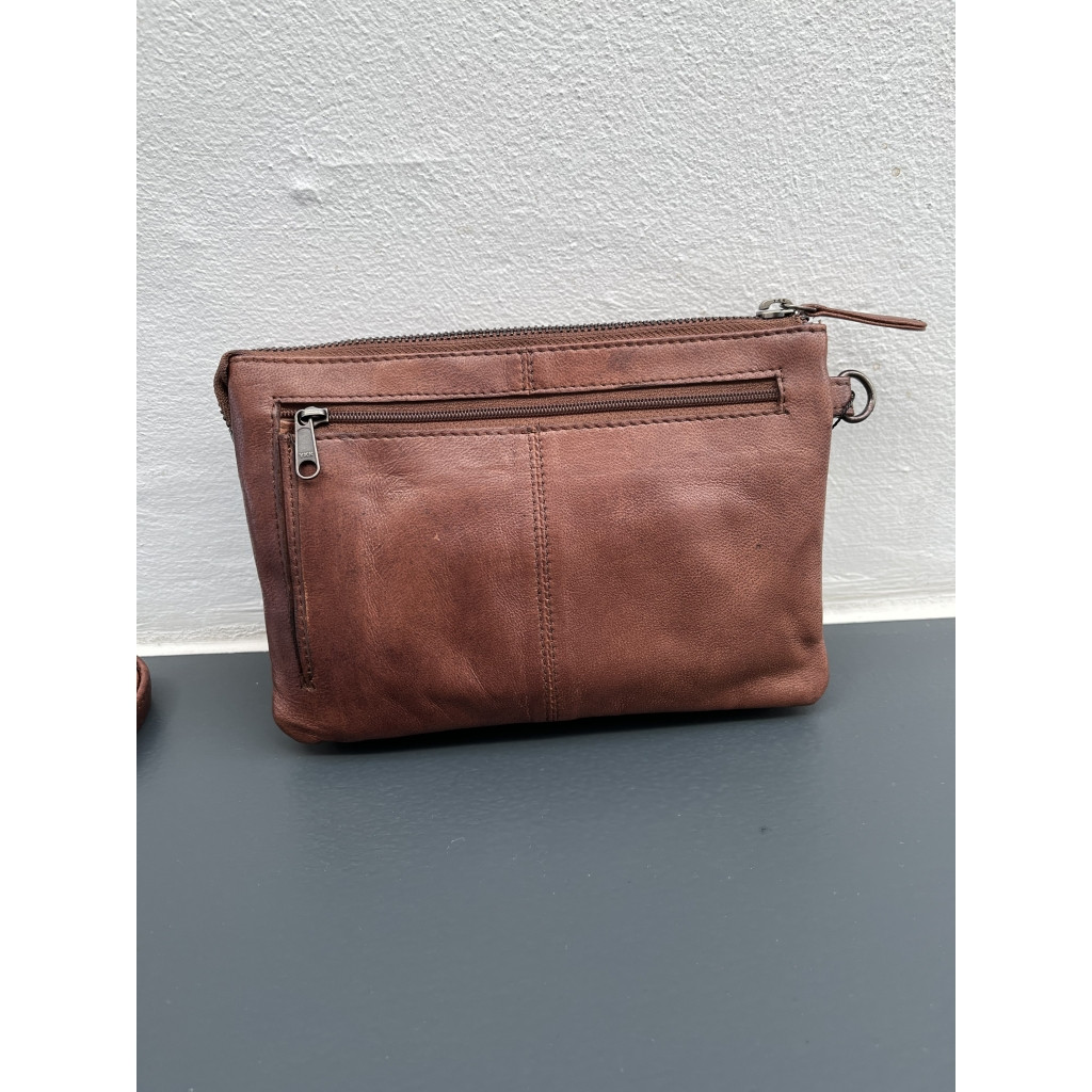 Super fin tegnebog/taske i mørk cognac med lang rem.