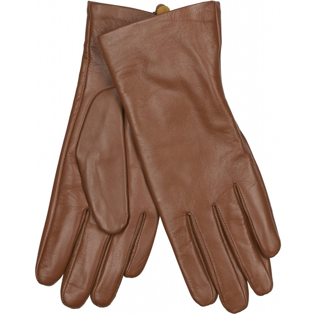 Lækker handske i lammeskind. Farven er cognac og de kan bruges til smartphone, altså der er fingertouch i.