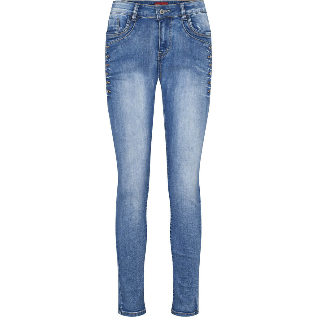 CHILI jeans med fede detaljer og super pasform. Masser af stræk. Tætsiddende model og anbefales at gå en str. ned. (kan ikke returneres)