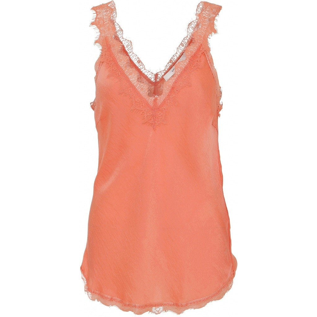Costa Mani koral top med blondekant. Løs model og 100% polyester. Har en super pasform. Tages ikke retur.