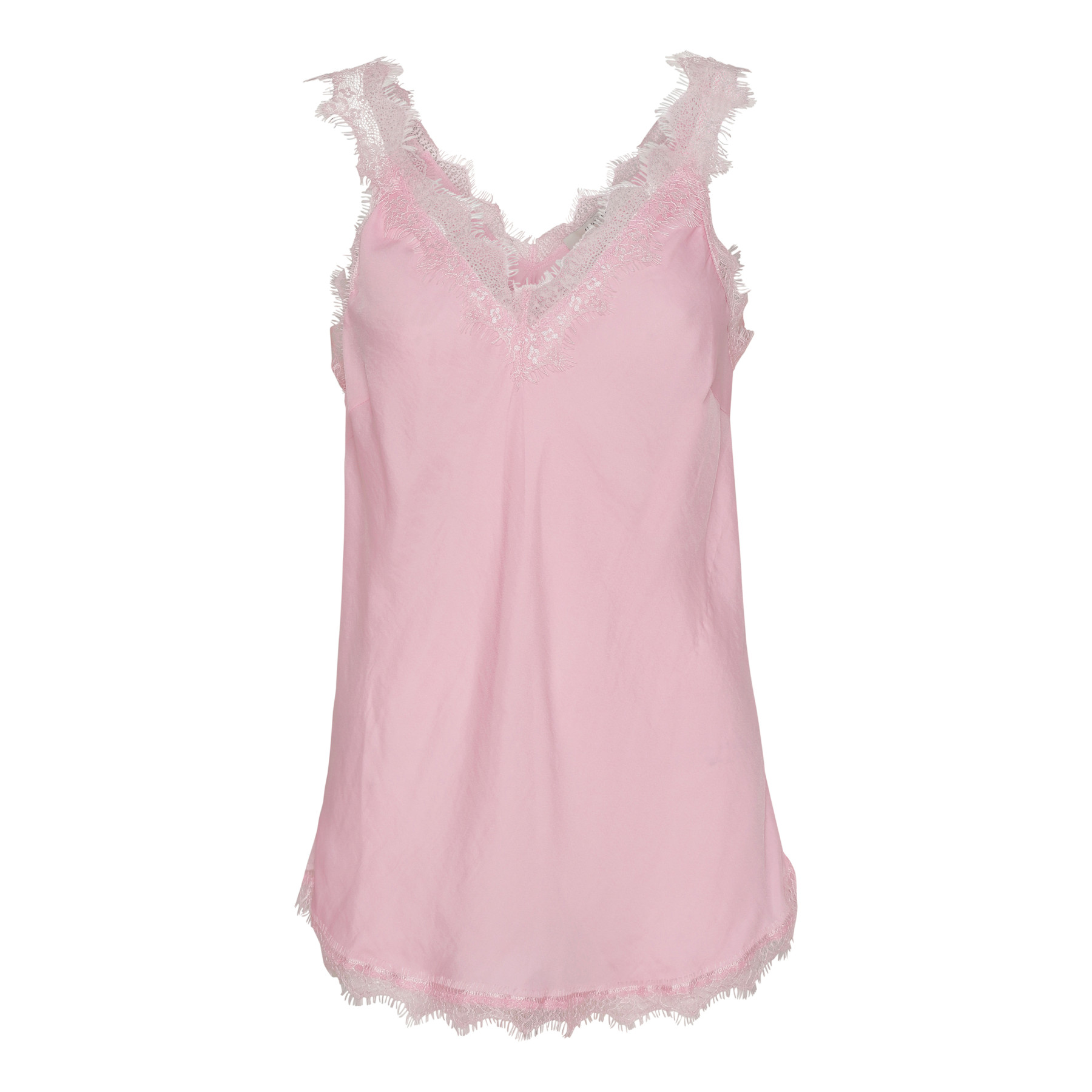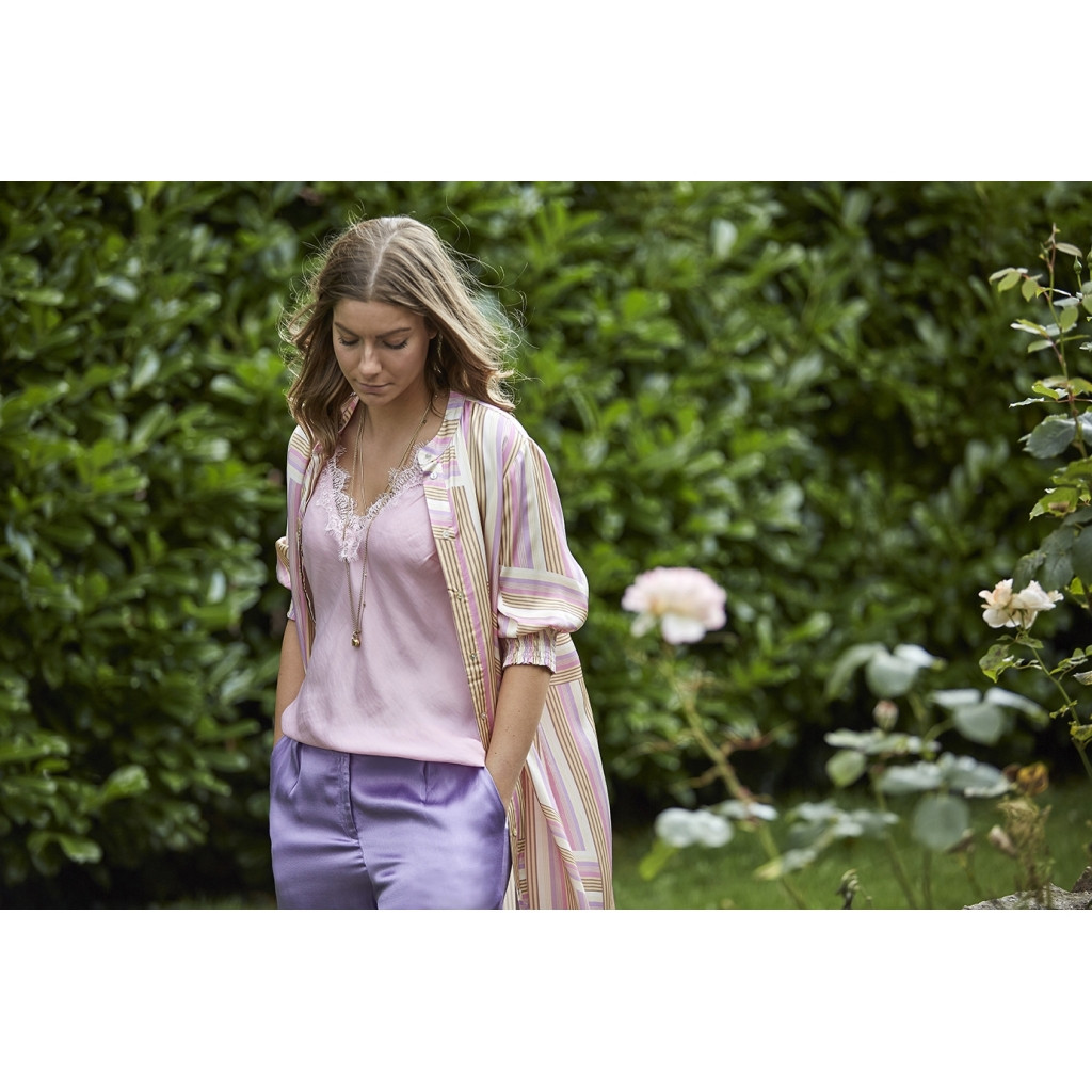 Costa Mani top med blondekant i lyserød.
