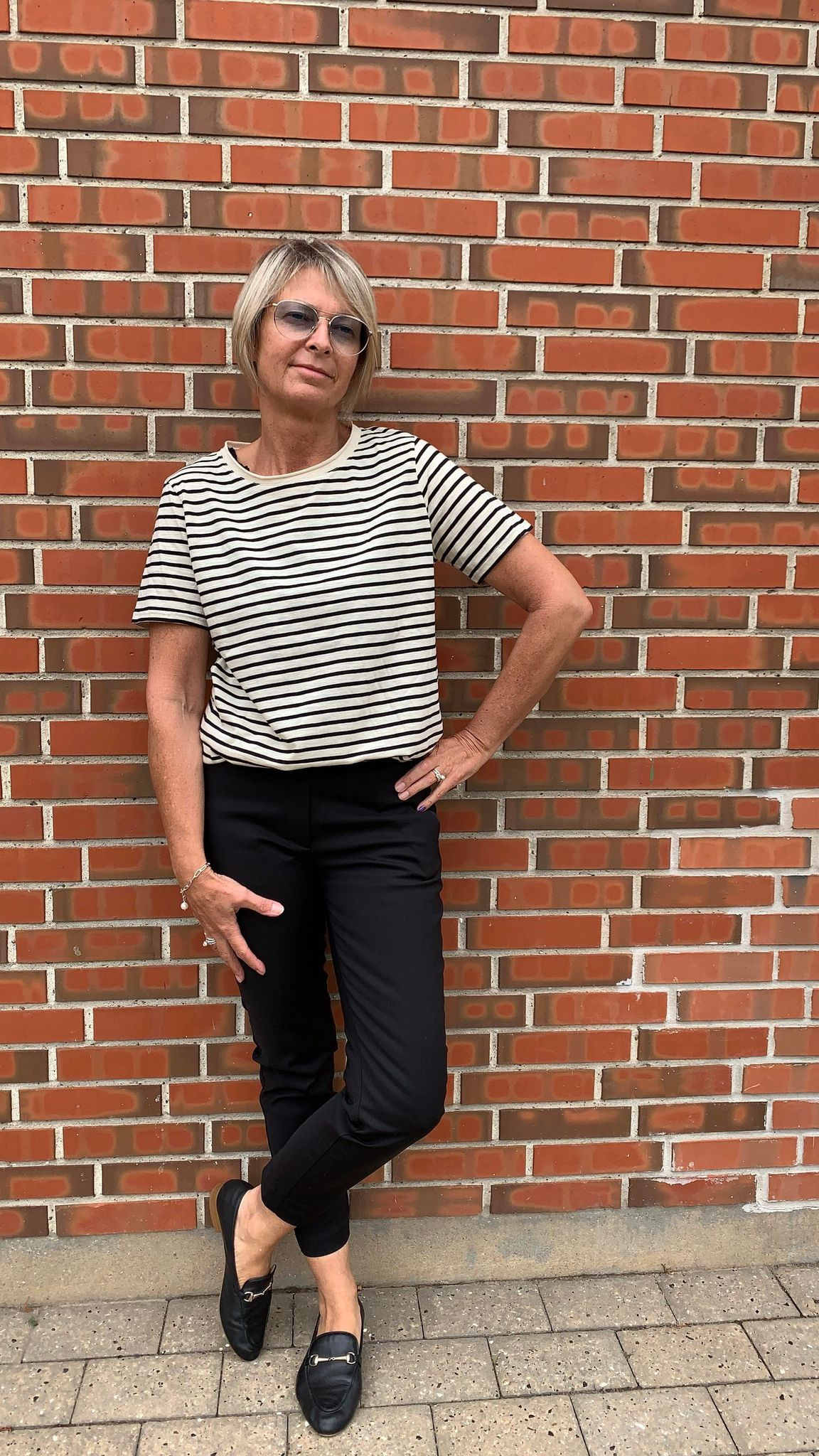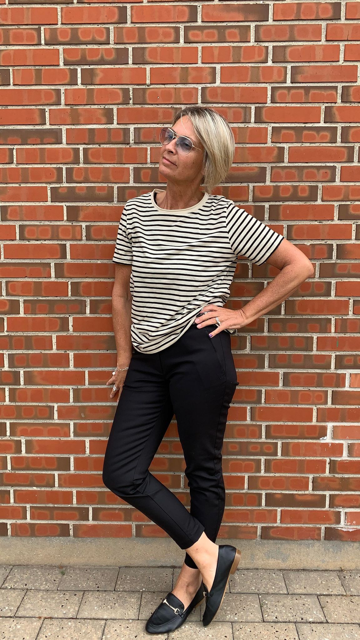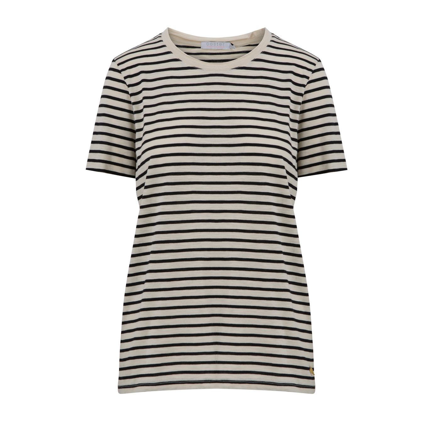 Coster Copenhagen behagelig t-shirt med striber i sort og sand.