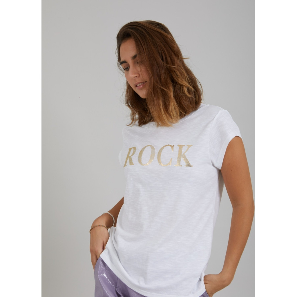 Coster CPH hvid ROCK t-shirt med rund hals. Lidt rummelig i str. Tages ikke retur.