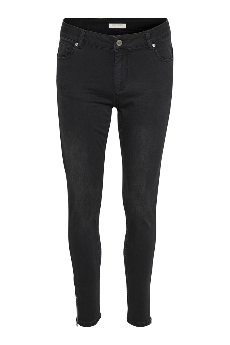 Denim Hunter flot og enkel sort jeans. Denne model har en kort lynlås på ydersiden af anklerne og svarer i benlængden til en 7/8 og bør være en del af din basis garderobe. 90% Cotton,8% Polyester,2% Elastane. Tages ikke retur.