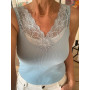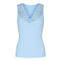 Tim & Simonsen lyseblå lace top. V-lace rib top - Top med smuk blonde V-udskæring. Tages ikke retur.