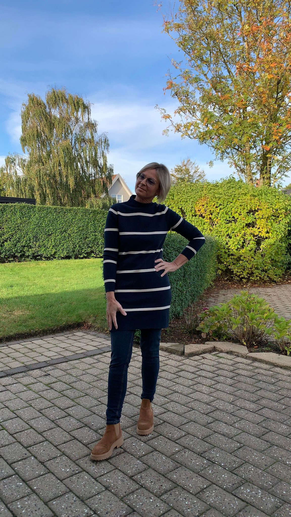 YAYA Strikket kjole med striber, høj halsudskæring og lange ærmer. (Skaffevare - kan ikke returneres)