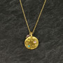 Guldbelagt kæde m. amulet og sten 45 cm + ext. Amulet 14 mm i diameter Med ægte natursten i amulet og løs ametyst vedhæng