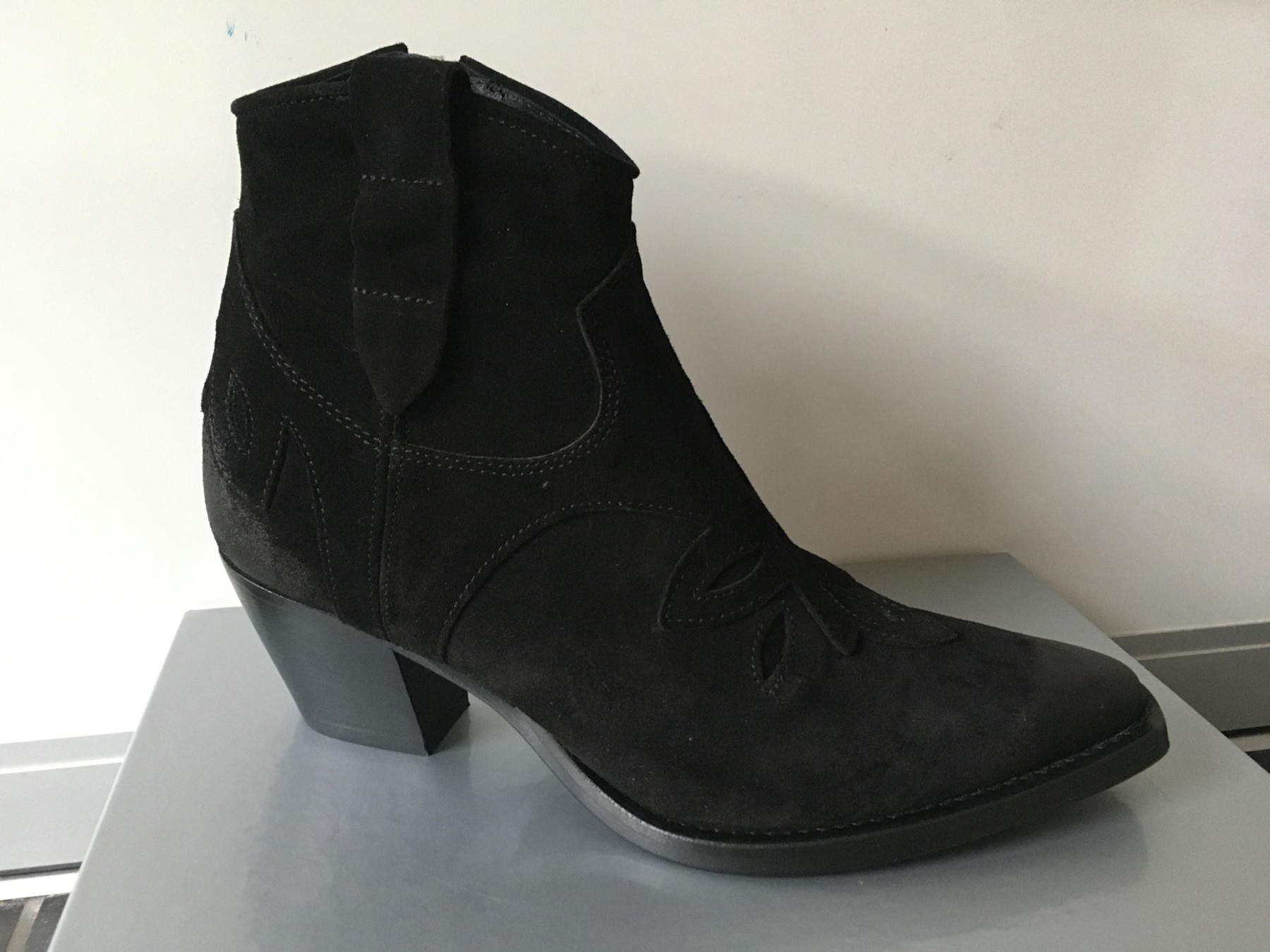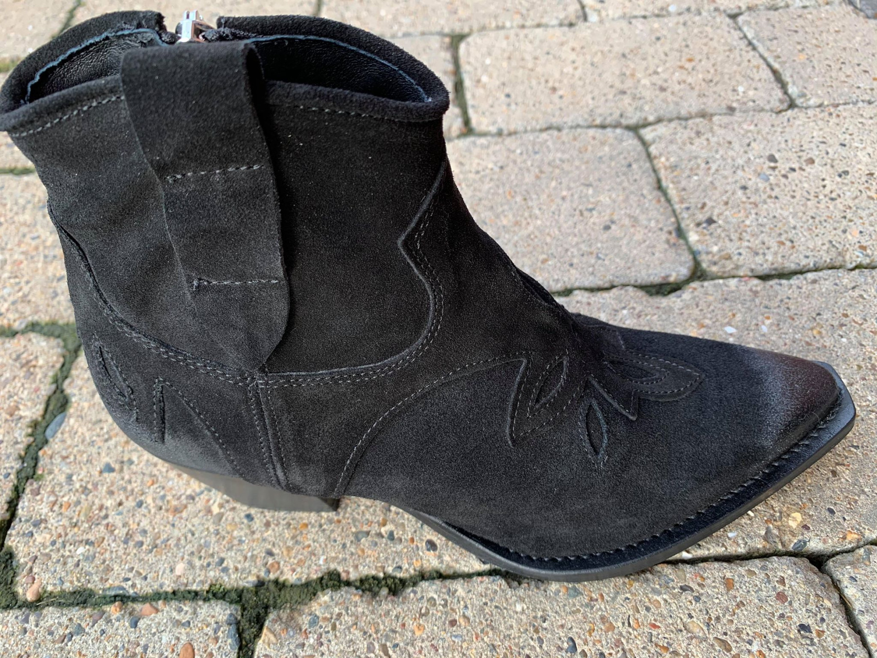 Bukela kort western støvle med super fede detaljer. Pasform er spot on og de er som en drøm for dine fødder. Carré tå og fine små broderier er med til at bløde det rå westernlook op, og den slanke model med tætsiddende skaft giver benet et smukt udtryk og passer perfekt til både kjole og jeans. (kan ikke returneres)
