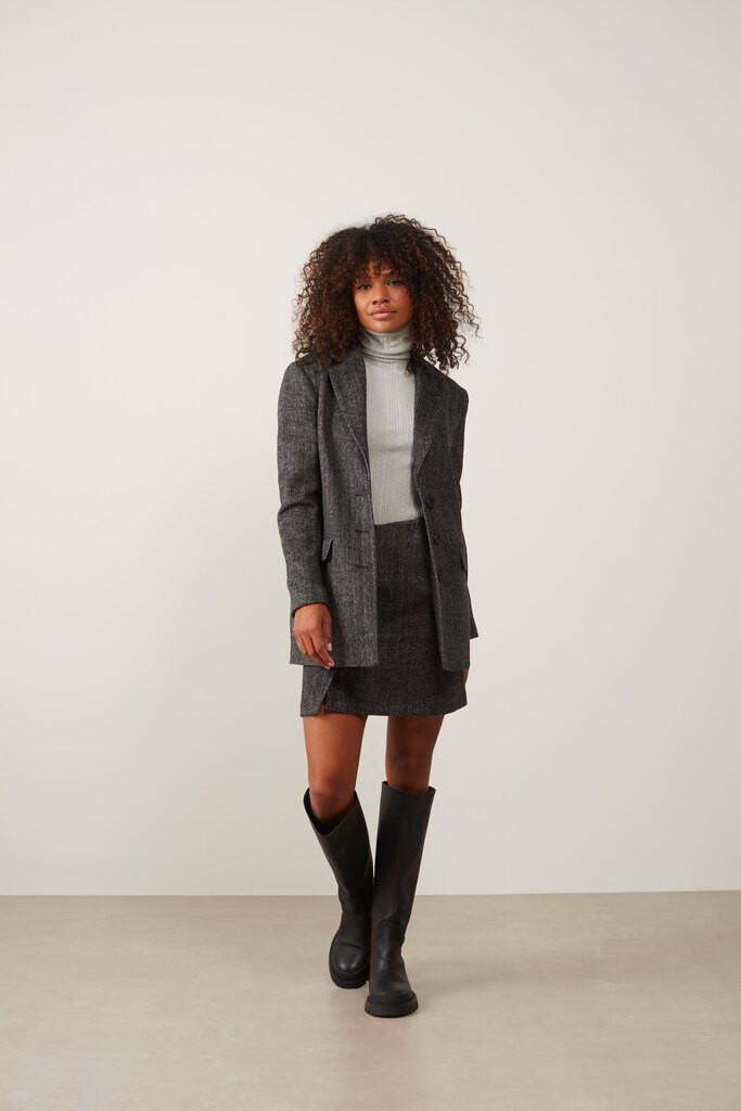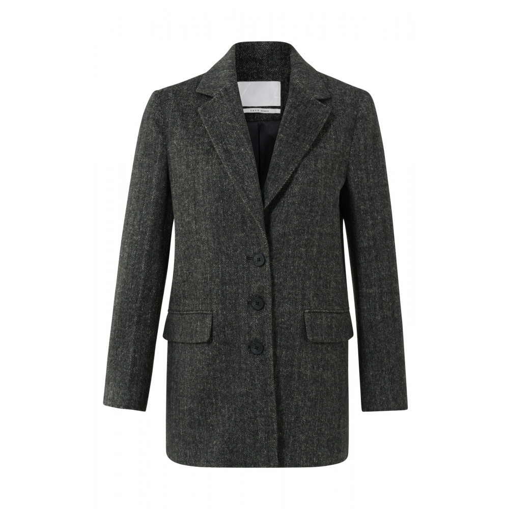 YAYA blazer med klassisk karakter og lange ærmer samt knapper. Blazeren er detaljeret med et alsidigt sildebensmønster. Alm. i str. dog løs model.