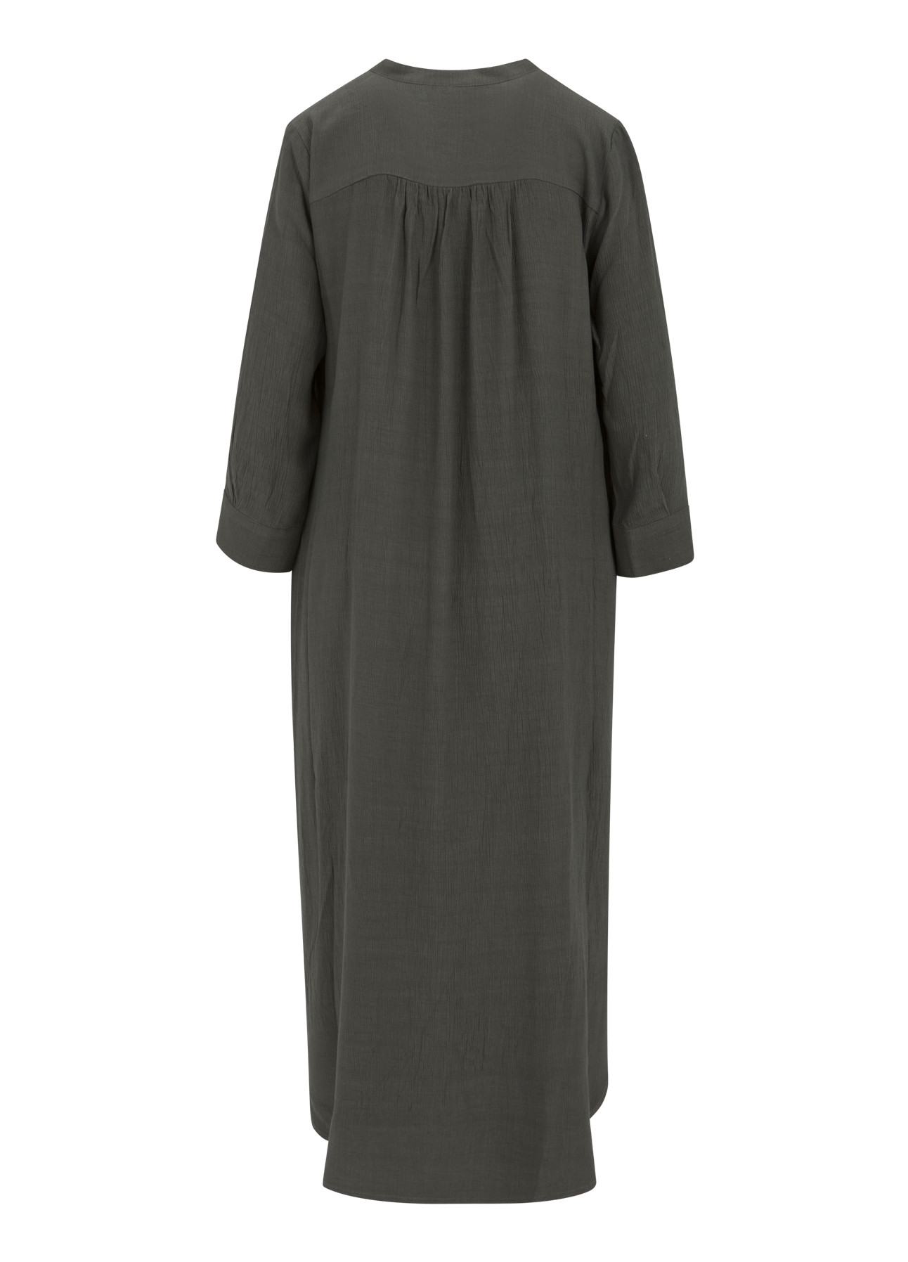Coster CPH skjortekjole i viskose. Farven er army og løs model. Lidt længere bagtil. Alm. i str. dog løs model. (kan ikke returneres)