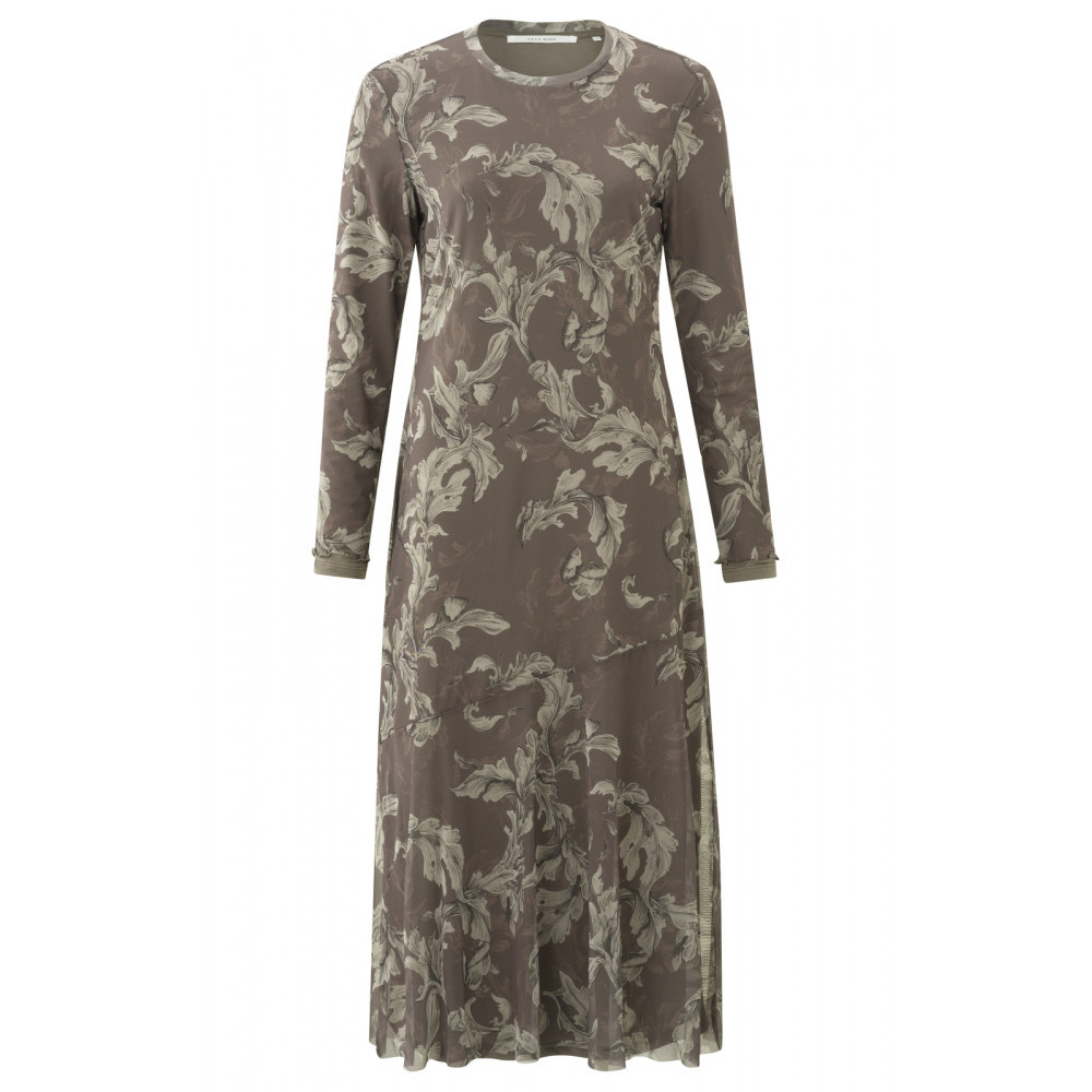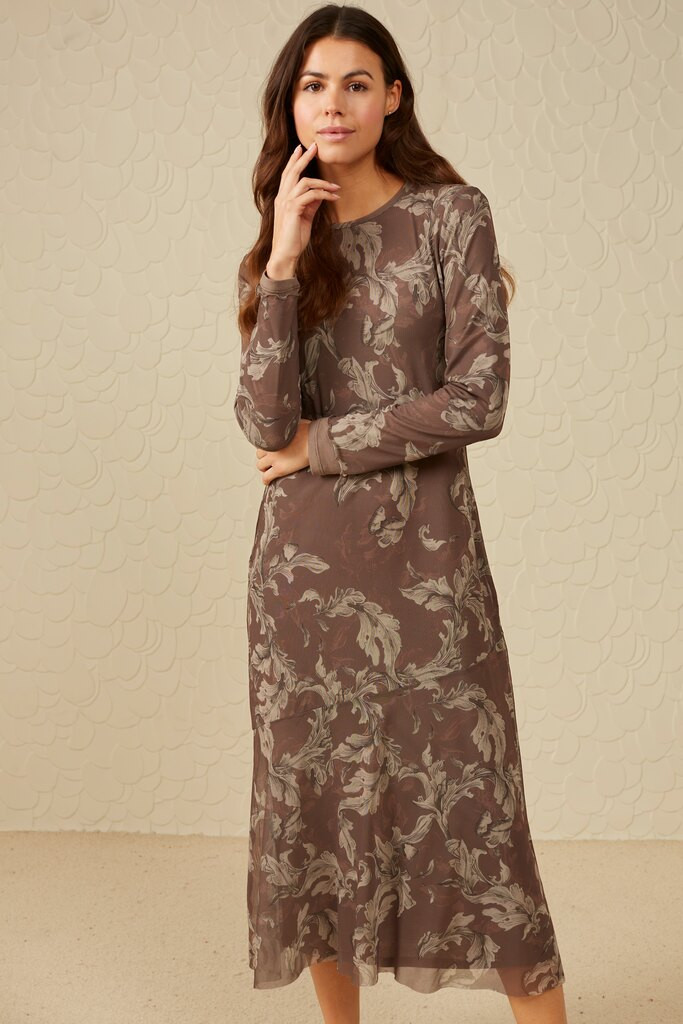 YAYA elegante meshkjole er beriget med et historisk print med et moderne touch. Kjolen har rund hals, lange detaljerede ærmer og en blød inderkjole. Tætsiddende og lidt lille i str. Tages ikke retur.