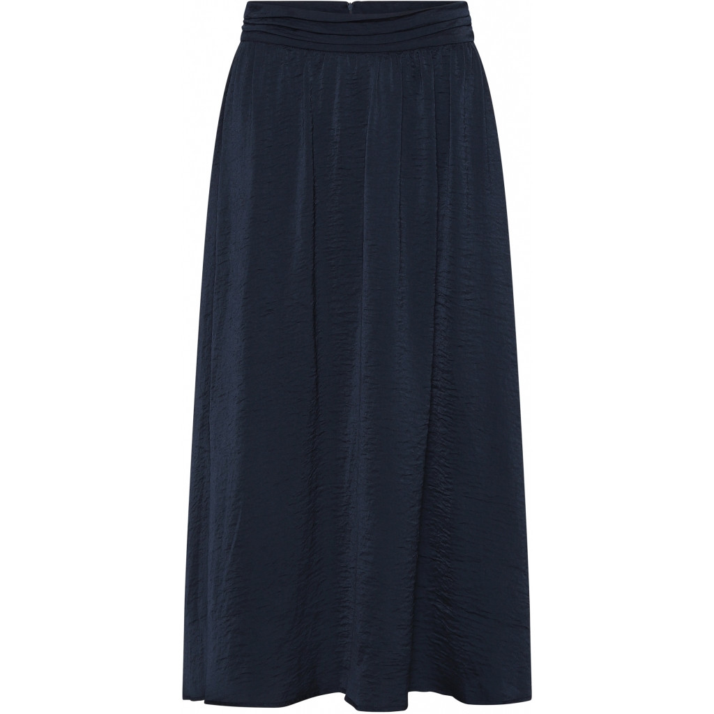Costamani smuk navy nederdel med elastik i taljen. Falder smukt og kan bruges i til hverdag med strik eller tee. Rummelig i sr. og flere er gået en str. ned. (Skaffevare - kan ikke returneres)