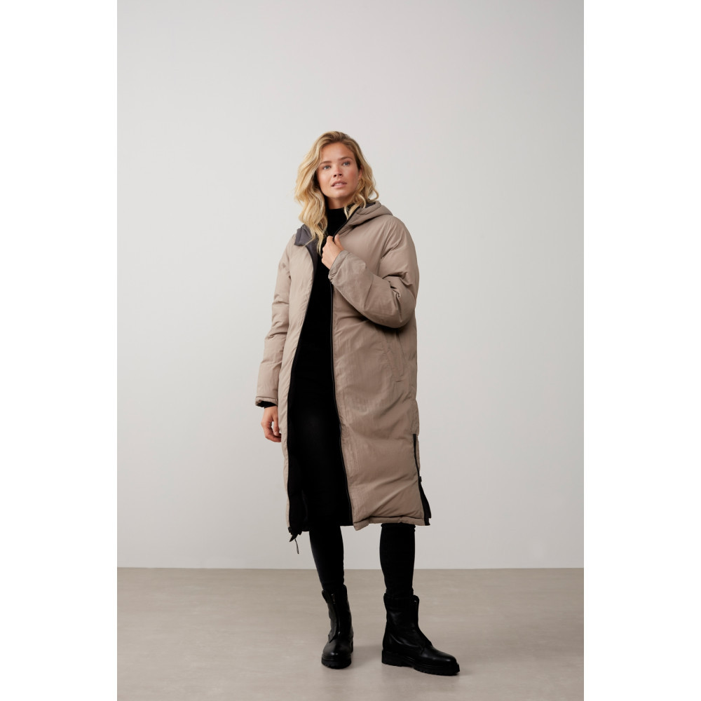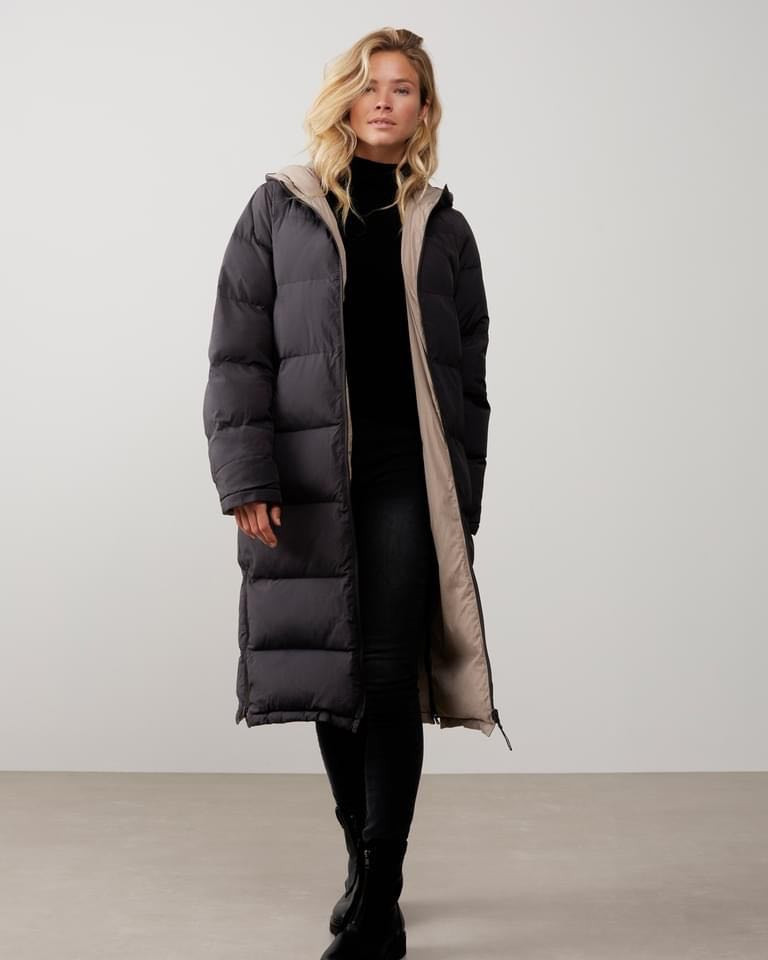 YAYA lang pufferjakke holder dig dejlig varm i de kølige dage. Det passer også ubesværet ind i dit look, da jakken er vendbar. Jakken er detaljeret med altid praktiske lommer, lynlåse og en hættetrøje. Lidt rummelig.