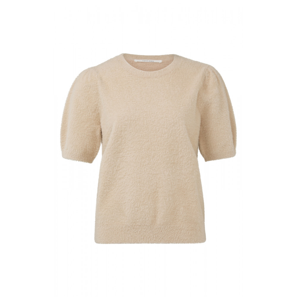 YAYA super bløde sweater i et luftigt garn har crewneck og korte ballonærmer. Bliv komfortabel gennem dagen i din nye yndlingstrøje. Lidt rummelig i str.