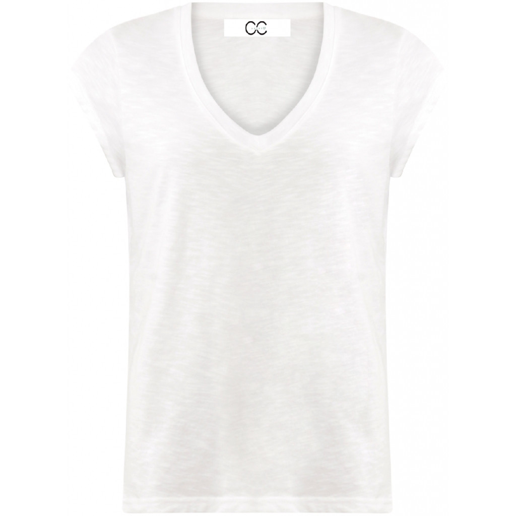 Coster Copenhagen tee med v-hals og kort ærme. Løs model og lidt rummelig.