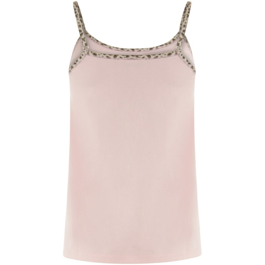 Coster Copenhagen feminin top med leopard kant. Løs model og stropperne kan justeres.