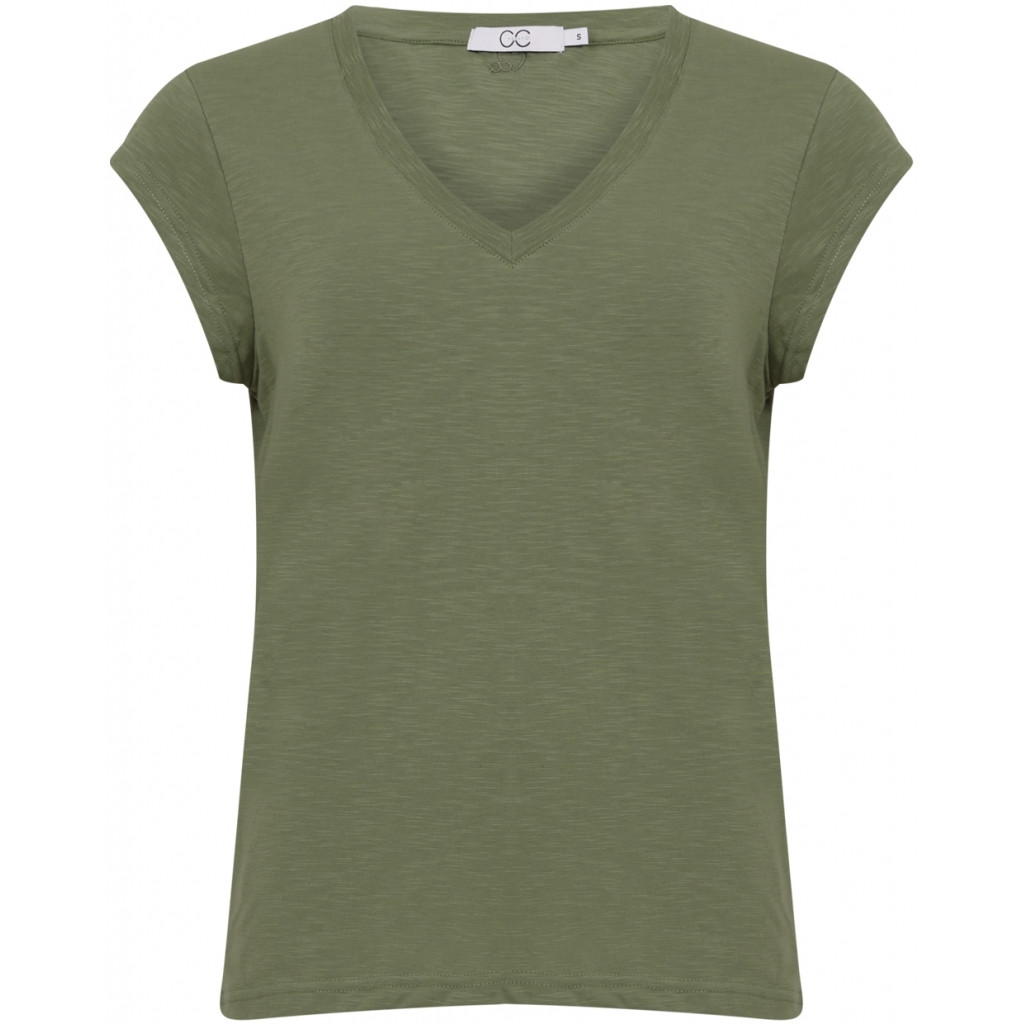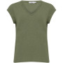 Coster Copenhagen tee i grøn med v-hals og kort ærme. Løs model og lidt rummelig. 60% bomuld og 40% polyester.