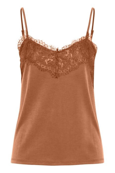ICHI BLONDETOP med blonde foran og v-hals. Kvalitet: 65 % modal, 35 % polyester. Alm. i str. Tages ikke retur.